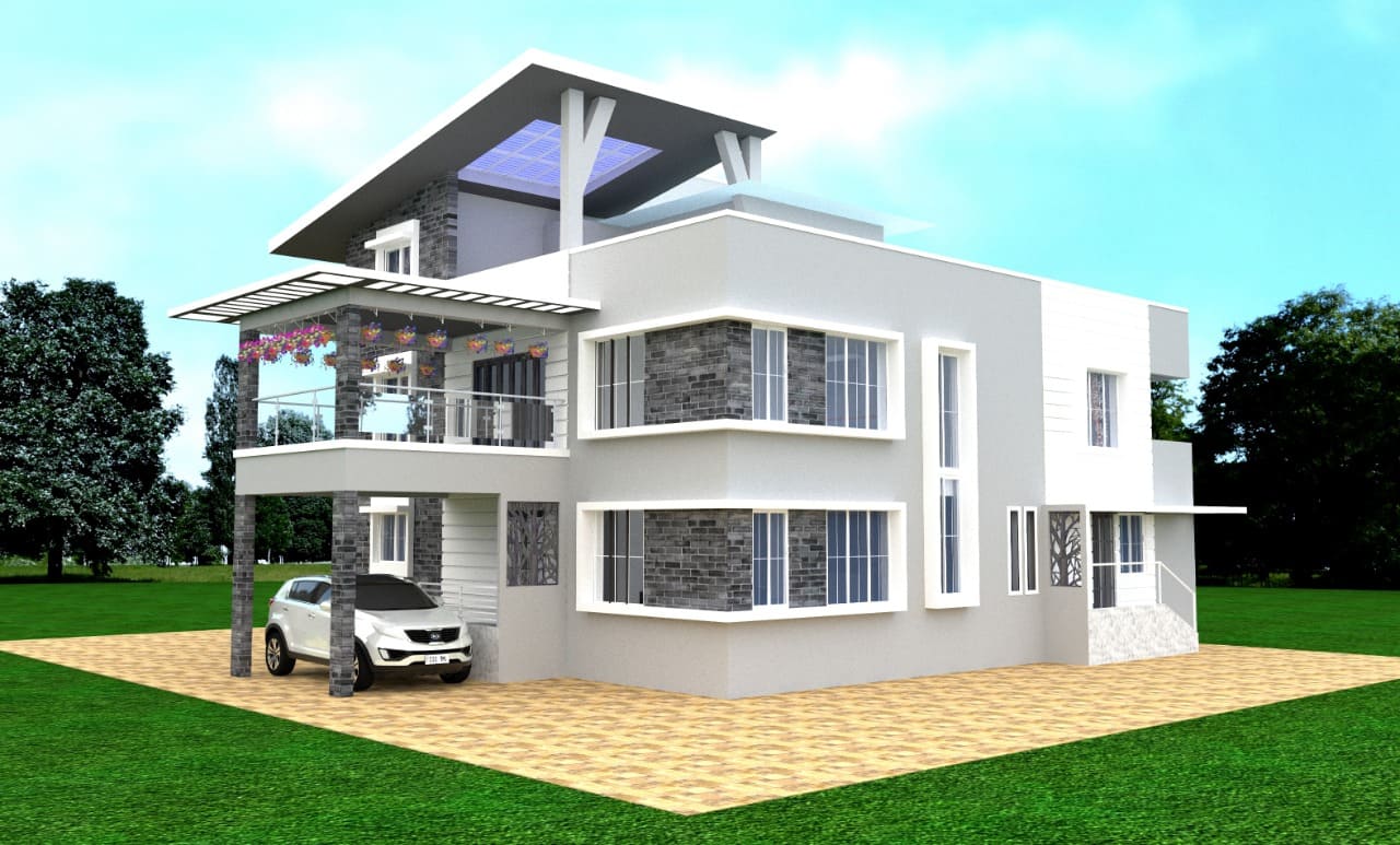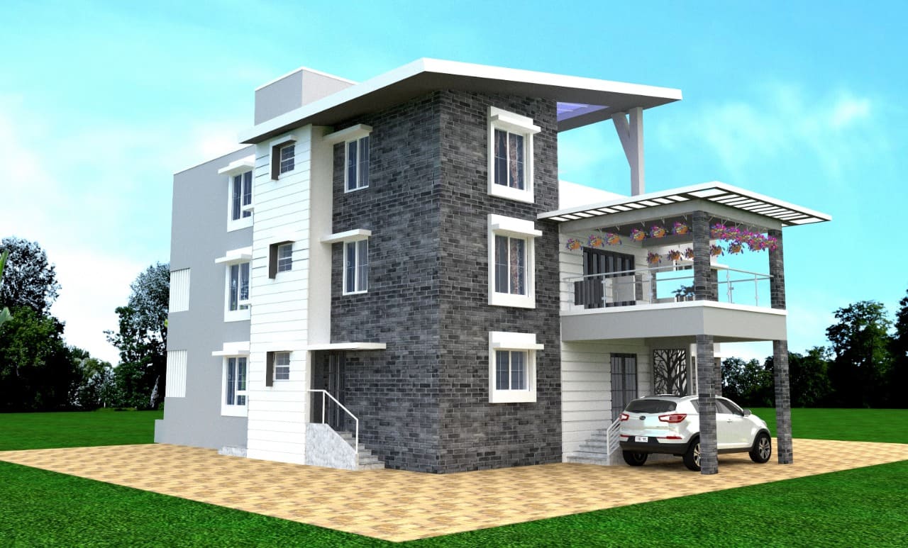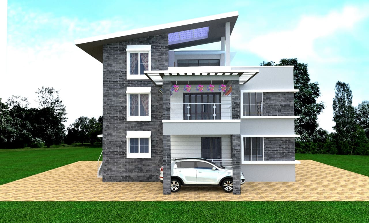 It’s a modernist design with traditional external cladding material. Exposed concrete and brick work maintains a rustic look which suits to surroundings. Plain white background maintains the elegance same time. Planning is based on Vastu norms and functionality both.