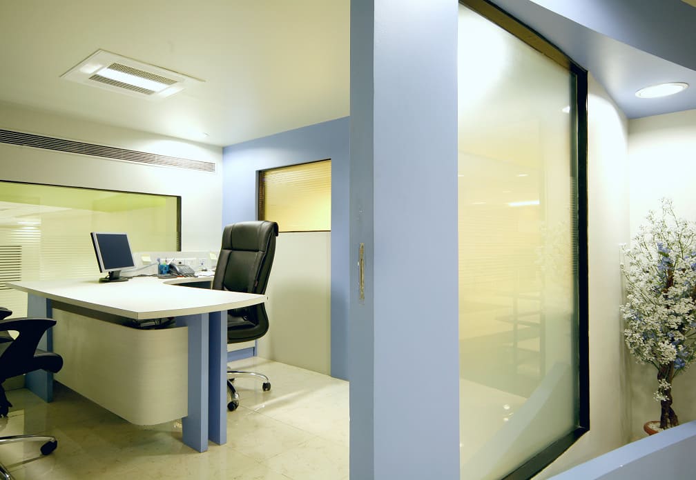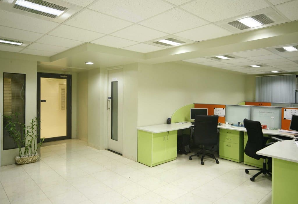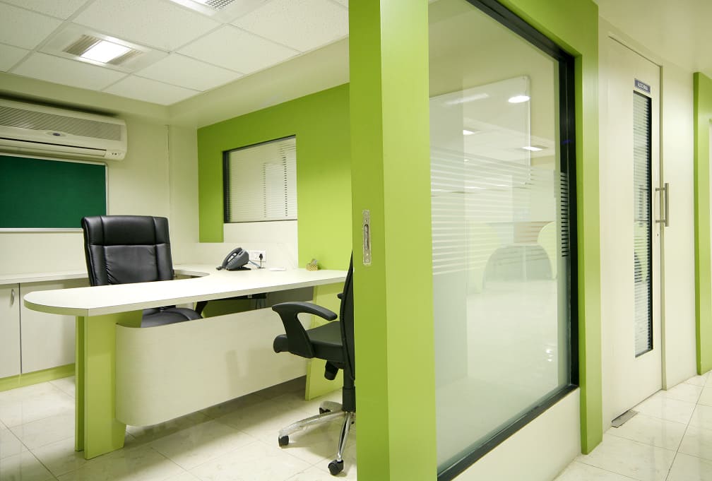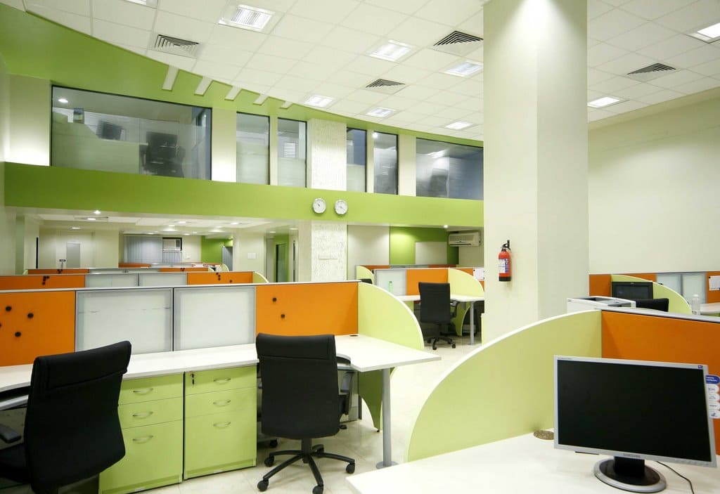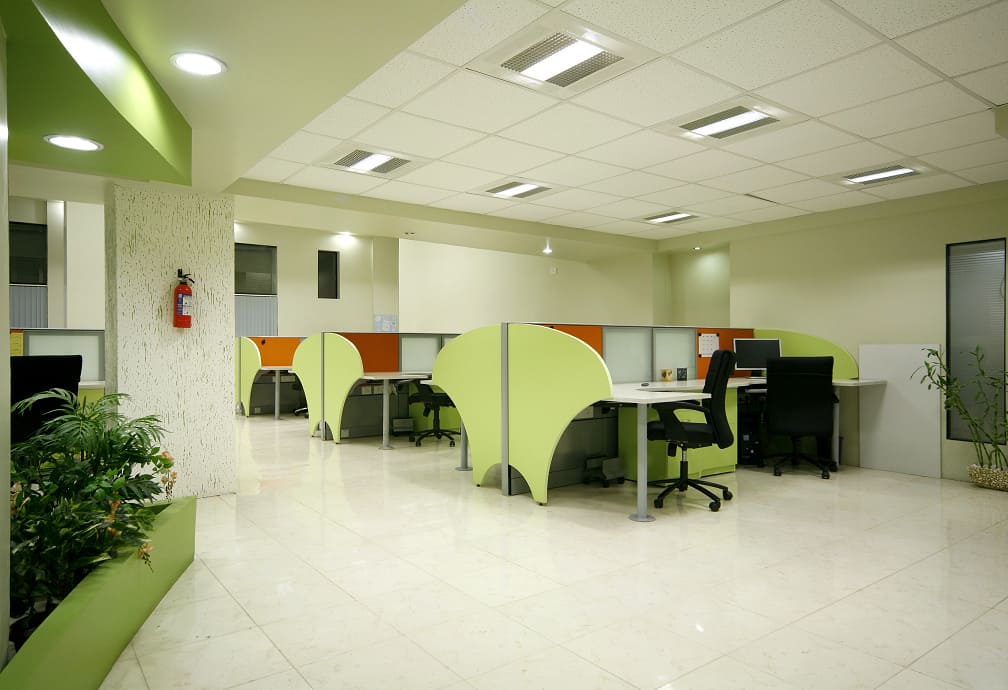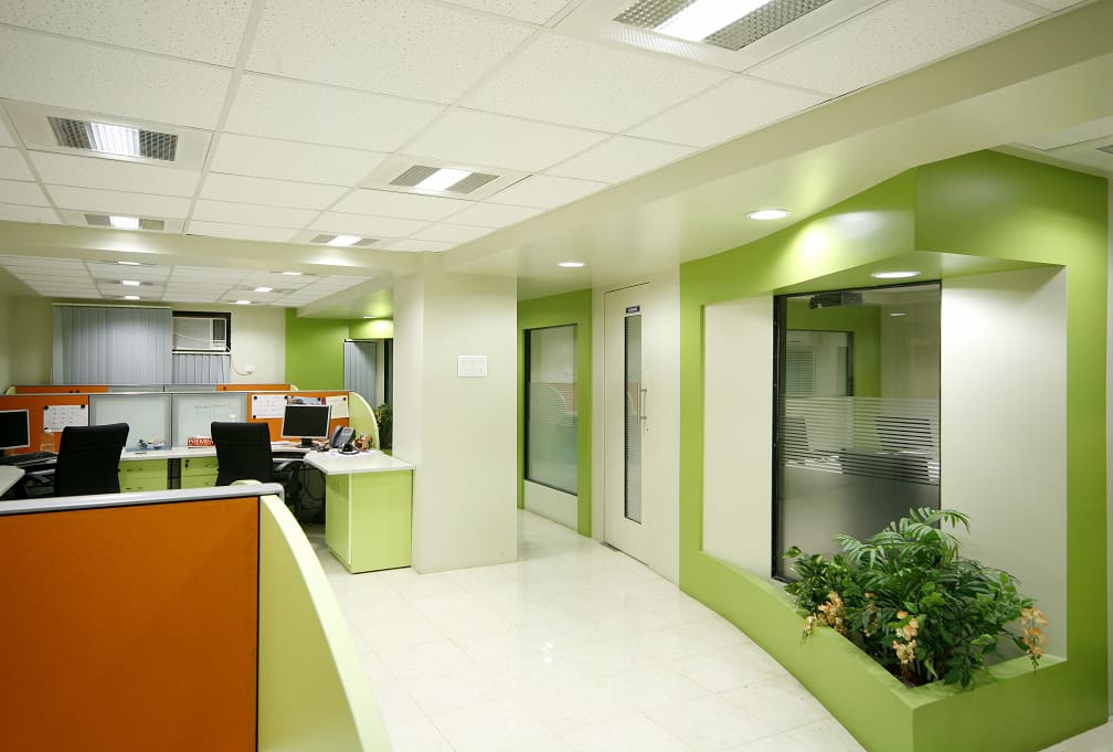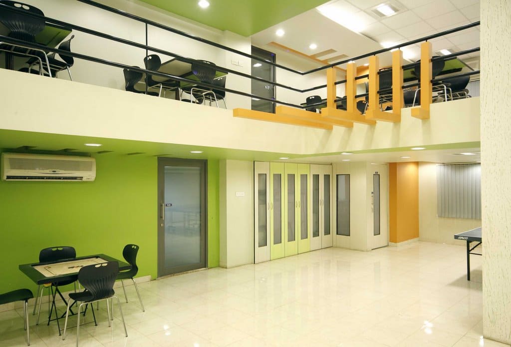 The concept of design was to reflect trendy & playful nature by bright colors & hand crafted elements. Apart from ergonomic furniture, lighting also plays a huge role when it comes to office interior design thus Visual segregation of IT area(white & green) & BPO area (white & Blue) is done through complementary colours.